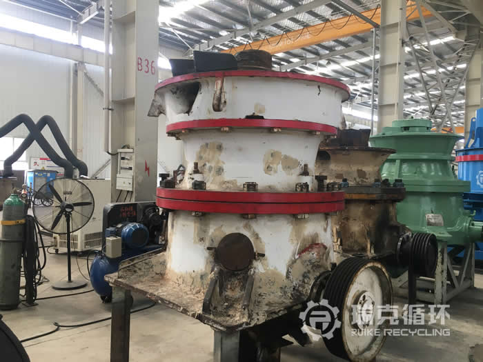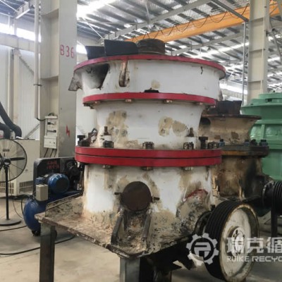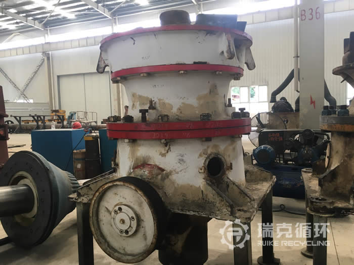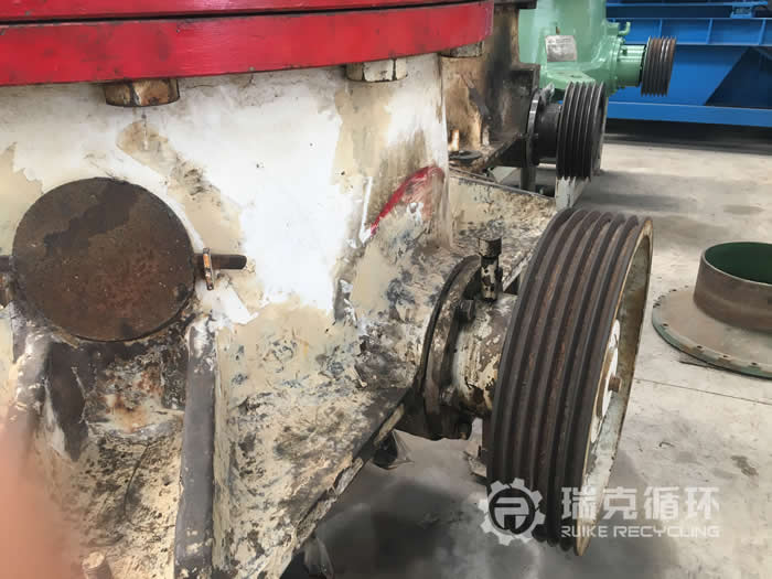 据客户介绍该台CF100s圆锥破碎机购买之后一直在河北某地使用,生产性能比较稳定,基本上没有出现过损坏,使用中只更换过易损件,由于受环保影响,将设备转让。我公司派技术人员到现场检查该设备的实际情况,除了机身锈迹较多以外 ,没有发展其它明显的损坏,设备运回公司之后,将设备清洗之后拆开检查,依据检查结果制定检修方案,按照计划完成还设备的检修之后,在试机平台上进行了数个小时试机,试机中设备运行分厂平稳,各项数据均符合出厂标准。