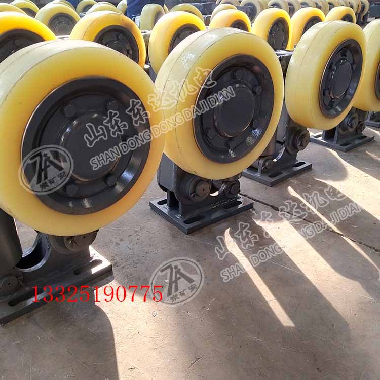 滚轮罐耳装置又称灌道轮,缓冲轮,罐笼缓冲器,滚轮,皮轮。一套为4组,一组3个,共计12个。