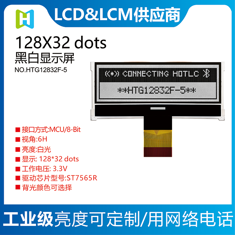 型号: 128*32 COG点阵液晶屏/仪器仪表显示屏/HTG12832F-5