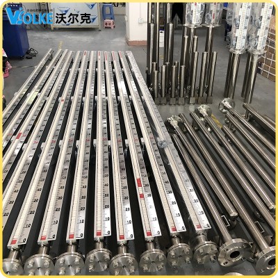 安装在容器顶部,浮球通过导杆带磁单元上下运动,从而进行测量。 如测量位置的液面波动较大或有暗流,可加装稳压筒,以达到更好的测量效果。