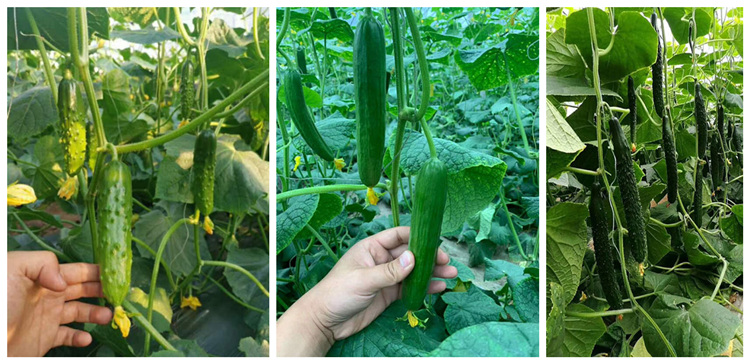 连续结瓜能力强,返头能力强,不歇秧,产量高,腰瓜长36cm左右,短把,密刺,颜色均匀,油亮型.瓜条顺直.