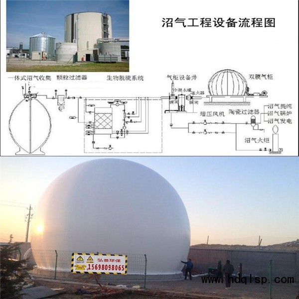 沼气储气柜材质及安装方法双膜气柜结构简单厂家:15698098065李经理沼气的使用越来越广泛,利用沼气发酵可以来解决养殖污染,沼气也可用来可以做饭、照明。养殖场的牲畜粪便,工业废弃物,餐厨垃圾和一些农业废弃物经过发酵后会产生大量的沼气,如果沼气产量达到一定的程度而我们用不了的时候,可以用双膜气柜储存起来。