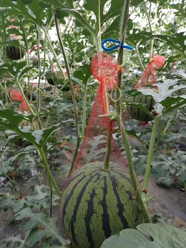 果实圆球至高球型。果皮绿色,覆有墨绿条纹。如果实膨大期遇低温,果皮底色和条纹会加深。果肉桃红色,甜而多汁,中心可溶性固形物11~12%,边可溶性固形物8~9%。果皮较84~24略硬,较耐储运。