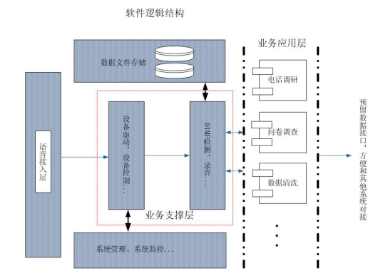 本系统是集计算机技术、网络技术、计算机电话集成技术、以及数据库技术于一体的网络化综合业务服务平台。该平台由人工智能问卷系统、语音系统、统计分析系统、SMS短信以及系统维护模块组成。通过人工智能方式,利用先进的通讯技术建立一个科学的高效的电话访问中心。