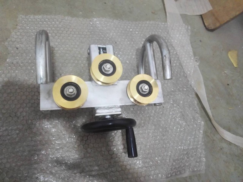 三轮接触线调直器通过三个铜质滚轮沿导线滚动实现对接触网线的校直。其主要特点是:1.不易对接触网线表面产生损伤。2.调节简便、快捷。3.调节精度高。4.体积更小、重量更轻、外形美观。
