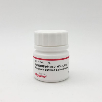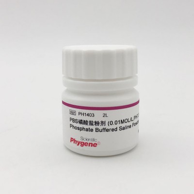 Phygene的PBS磷酸盐粉剂(0.01mol/L,pH7.2-7.4)主要由磷酸氢二盐、磷酸二氢盐钾、氯化钾组成,含少量氯化钠,不含钙离子和镁离子,溶解于水后pH值为7.2~7.4,主要用于免疫组化、组织切片或其他常规用途。