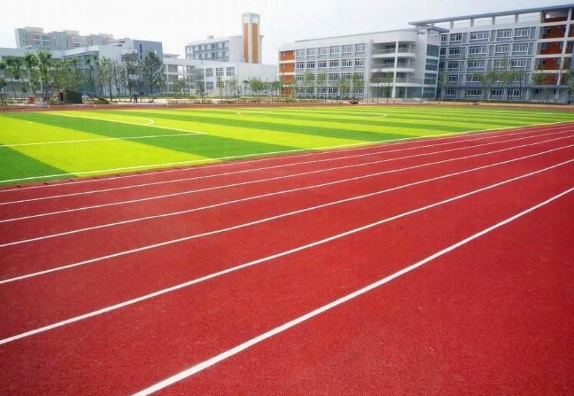 混合型塑胶跑道是由双组分聚氨酯胶与黑色橡胶颗粒两种的塑胶底层组成一种新型高分子合成材料,现已被公认为是目前世界上至佳的体育运动场地使用材料,它具有强度高、弹性好、吸震性能好、耐磨、耐气候老怀、防滑、平整和色彩美观的优点。同时场地易于清洁和维修管理,不受气候条件的影响。美观、鲜艳、平坦,使运动员具有舒适感,振奋精神,提高竞技水平。