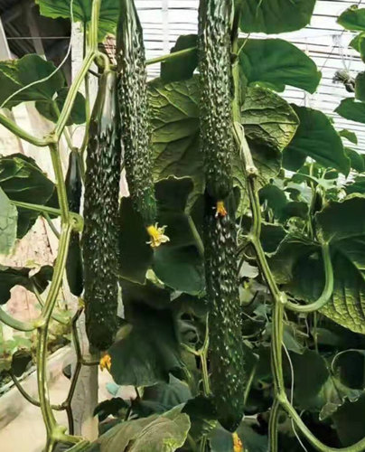 强雌品种,耐寒性好,瓜长35-38cm,绿瓤、短把、密刺、油亮型、亩产高.南方北方均可种植.