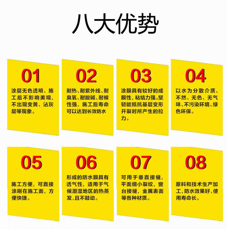 3、涂膜无色透明,涂覆后不会破坏原墙面装饰效果,不会出现变黄,不沾尘,不污染变黑;