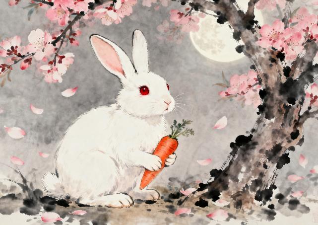兔:现代人的焦虑:当代社会的高压环境下,兔的敏感映射了人际疏离,诗句中的“落日”成了下班时的疲惫,“谁相送”则是都市中的冷漠。