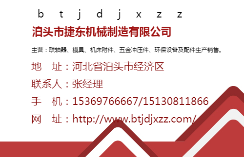 泊头市捷东机械制造有限公司【http://www.btjdjxzz.com/】位于“中国铸造之乡”-中国汽车模具之乡,铸造名城——泊头市,北依京津,东临渤海,京沪铁路,京福公路,国道纵贯全境。交通方便,位置优良。泊头市捷东机械制造有限公司各种设备,技术力量,是生产各种类型联轴器和减速机的厂家,产品主要有:膜片联轴器、星型弹性联轴器、梅花弹性联轴器、ZL型柱销齿式联轴器、TL型弹性套柱销联轴器、HL型弹性柱销联轴器、JS型蛇簧联轴器、齿式联轴器、链条式联轴器、NL型联轴器、带制动轮鼓型齿式联轴器、十字滑块联轴器、弹性块联轴器、夹壳联轴器、DL多角联轴器、凸缘联轴器等联轴器产品,可供国内许多机械制造行业。本公司自创建以来,产品销售至各地,深受新老客户的青睐,本着诚实信用原则,与多家客户建立了长期的合作关系。