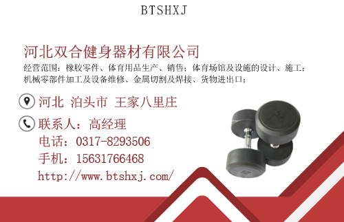 河北双合健身器材有限公司(http://www.btshxj.com/)是生产包胶杠铃、包胶配重片、杠铃片、哑铃架等健身器材厂家,成套彩盖哑铃清单:2.5kg5kg7.5kg10kg12.5kg15kg17.5kg20kg22.5kg25kg哑铃各两只,10付方管哑铃架一套。哑铃共计275kg。彩盖哑铃的彩盖使用环保PU材料做成,没有刺鼻的味道,是色彩艳丽,不掉色,颜色可定制,定制您的专属色彩。