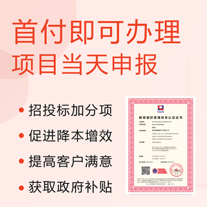 管理体系认证证书 ISO21001:2018是近几年才颁布的证书,主要是由国家认监委所颁布的《教育组织管理体系指南规范》的相关标准以及相关的法律法规所拟定的本办法, 教育组织它是为了能够实现某种特定的教育目标的系统,为了能够帮助我国更好地实现科教兴国战略。申请办理教育组织管理体系认证证书 ISO21001:2018认证流程:1、致电咨询资质办理顾问,提供公司名称,在1小时内为客户查询是否符合申请条件;2、会在三个工作日内对客户进行一对一的整理,为客户准备详细的认证资料,以确保可以一次性通过。3、10个工作日内,客户即可获得电子版证书,并在权威网站进行证书公示,全网可查。