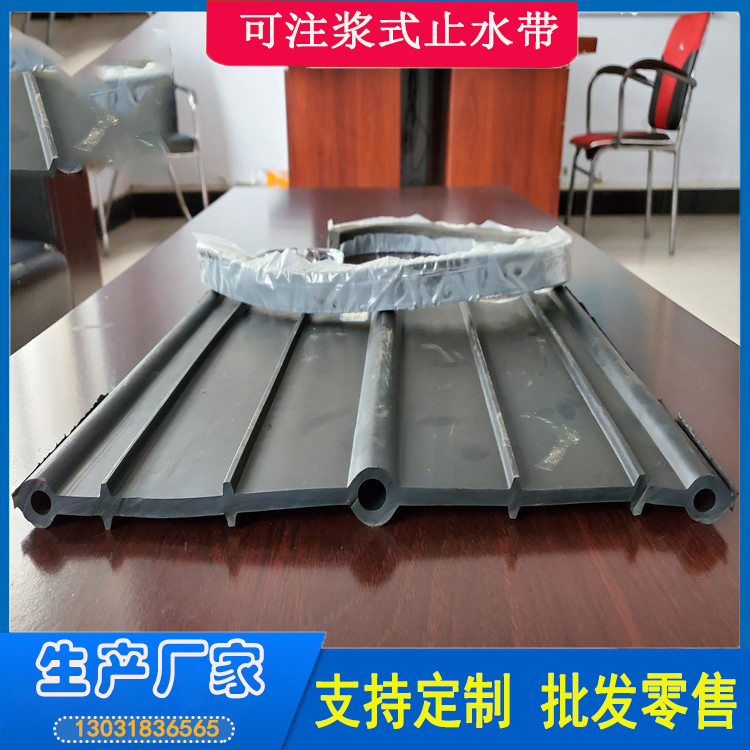 可注浆式止水带是在传统的止水带基础上进行了全新改进,即在产品的两侧设置了注浆管和逆止阀,从而提高了施工/伸缩缝的防水安全系数。如果发生渗漏,通过注浆,能有效地、快速的修补,防水质量,可靠不复发,其综合费用经济,解决了传统止水带的弱点。