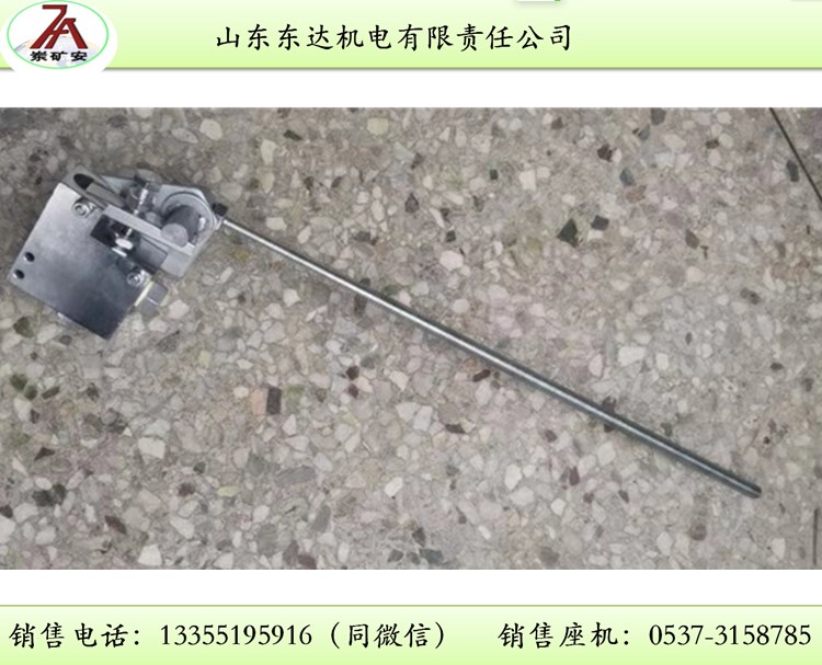 首先将此洒水降尘装置悬挂在皮带机上端(自行悬挂),连接上现有水源,喷嘴置于下端,触碰杆自然垂下,触碰连杆尾端与皮带机的距离保持在2-3公分左右(可根据煤块大小把握)以便在不接触到皮带的情况下又能够触碰到煤块。当皮带机正常运转时,煤流会触碰到连杆而前后摆动,同时连杆带动液压阀门的打开进而洒水起到降尘的作用,当没有煤流时,触碰杆不动作,阀门关闭停止洒水。以便实现皮带机上有煤流时自动洒水,无煤流时停止洒水的目点。