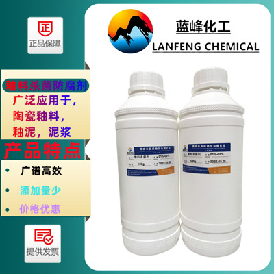 釉料杀菌剂,釉料防腐剂,JL-1502杀菌防腐剂采用先进工艺及配方,能有效杀灭细菌、真菌、霉菌等,克服了浆料、釉料的降粘、腐败、发霉、变臭等危害。釉料杀菌剂,釉料防腐剂,JL-1502杀菌防腐剂是一种新型的环保型广谱杀菌防腐防霉剂,尤其适合CMC羟甲基纤维素的碱性体系和球磨高温环境,主要有效成分为(BIT+MIT)复配而成,稳定性强,杀菌广谱、环保、添加量少防腐效果优等特点。广谱性,对细菌、真菌、霉菌、酵母菌、厌氧菌、假单胞菌、军团菌、 盐还原菌、铁锈菌、芽孢杆菌等菌类,浮游生物及藻类、有良好的杀灭抑菌效果抑菌时间长:可持续一个月以上 ;无毒、无色、无嗅、对皮肤无刺激 ;具有良好的絮凝作用 ;