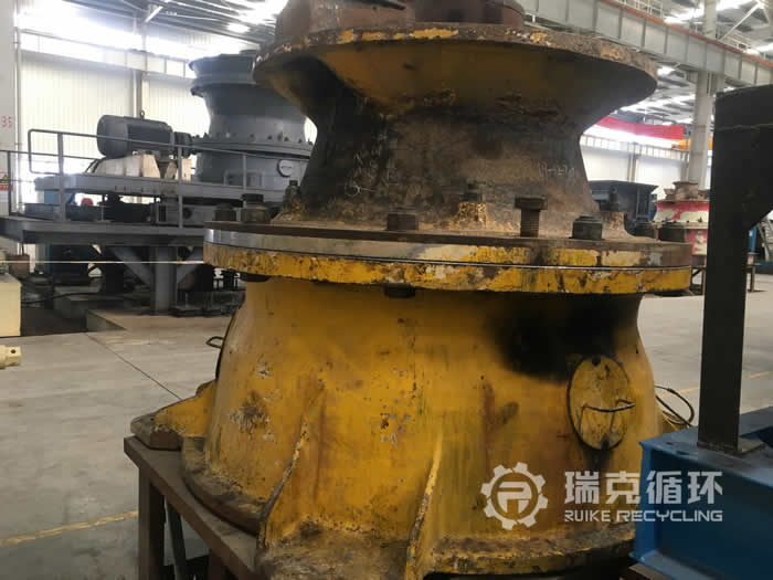 该台GP11圆锥破碎机已经检修完成,也经过了试机运行各项性能均符合要求,设备回收之前一直在山东某地使用从事鹅卵石破碎工作,由于该企业的生产场地搬迁并对生产进行调整,现有的设备不能满足生产的需要,到我公司考察过生产能力更大的设备之后将该设备GP11圆锥破碎机转让给我公司。商谈好回收事宜之后我公司技术人员赶往客户现场对该设备进行检查,没有发展明显故障之后将设备运回公司,在我公司车间对该设备清洗之后把设备整体拆开检查,然后依据检查结果制定检修方案。
