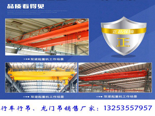 甘肃金昌行车行吊销售厂家供应的行吊分为三种:通用桥式起重机、单梁桥式起重机、双梁桥式起重机;具体的结构和代号有:1.吊钩桥式起重机.单小车.QD;2.吊钩桥式起重机.双小车.QE;3.抓斗桥式起重机.单小车.QZ;4.电磁桥式起重机.单小车. QC;5.抓斗吊钩桥式起重机.单小车.QN;6.电磁吊钩桥式起重机.单小车.QA.7.抓斗电磁桥式起重机.单小车.QP;8.三用桥式起重机.单小车.QS。