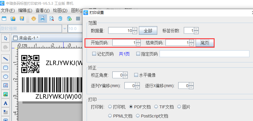 所以打印设置中,虽然数据量是10,开始页码是1,结束页码只能是1,点击尾页不会有任何的反应,这跟打印软件中的设置是有关系的,打印一张也是正确的。